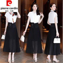 皮尔卡丹 两件套套装女夏季新款2021白色衬衫时尚中长半身裙子气质职业套装时尚有我品牌女装 白+黑 M