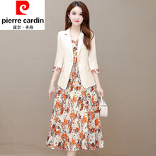 皮尔卡丹 小西装连衣裙两件套套装女春夏季2021新款显瘦遮肚修身吊带碎花裙套装时尚有我品牌女装 橘花M