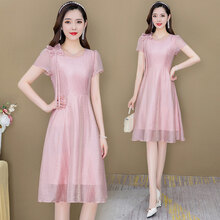 夏季2021年新款高端洋气减龄中长款夏天薄款 粉色 M
