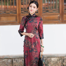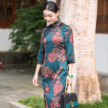 华族经典旗袍中式复古气质老上海高档优雅淑女中长款祺袍秋冬新款 靛蓝色 - 预售30天 XL