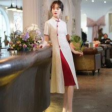 年轻款中式日常唐装演出汉服开叉裙8240 杏色 2XL