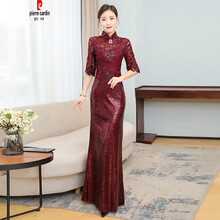 端庄大气婆婆刺绣婚宴婚庆妈妈装 红色 2XL