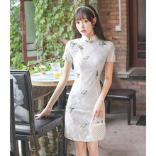 短款连衣裙刺绣白色中国风年轻款改良版复古小个子日常 SJT波纹蕾丝绣扇 L