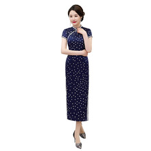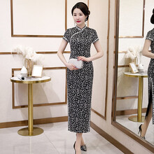 应否旗袍春季新款改良时尚修身旗袍裙女醋酸婆婆装中国风优雅礼服 黑色9841 XL