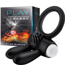锁精环延时环男用震动持久环电动羊眼圈女性私处蒂按摩振动环狼牙套夫妻共振防脱防水静音房事性玩具成人用品 兔子锁精环带10粒电池