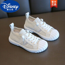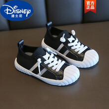 迪士尼【商场同款】 2021新款儿童网鞋夏季女童单鞋镂空休闲板鞋男童贝壳透气鞋子魔术贴官方旗舰 黑色 26码/内长16.7cm