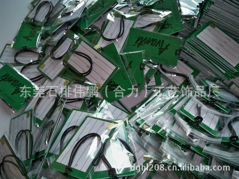 伟鹏工艺饰品厂之主营产品有:行李牌,行李卡牌,PVC绳,PU绳,胶骨胶绳、扁条空心管、手机织带、广告长尾夹、塑料钥匙扣、五金钥匙扣、钥匙圈、塑胶厂牌夹、胸卡胸牌、PVC行李牌、行李牌吊绳、广告扇、塑料跳绳、塑料开瓶器、有核无核口哨等各种塑料五金饰品礼品。