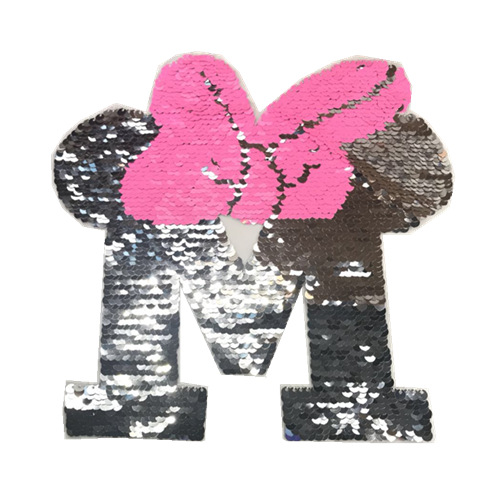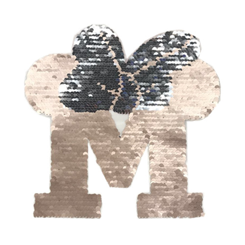 型号:M字 尺寸:M字高24*24宽,需缝 产品材料:珠片绣(可翻动) 产品颜色:现货颜色