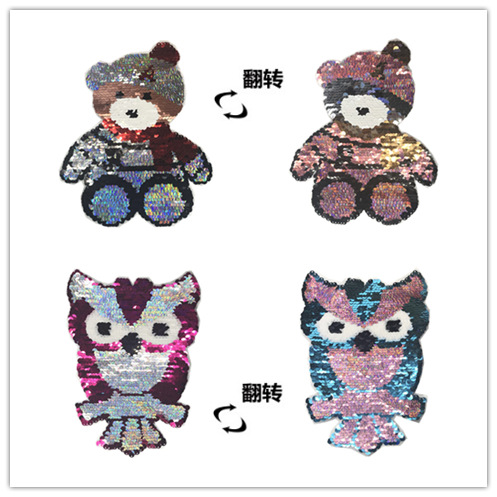 型号:熊跟猫头鹰 尺寸看描述图片有标记 产品材料:珠片 产品颜色:现货颜色