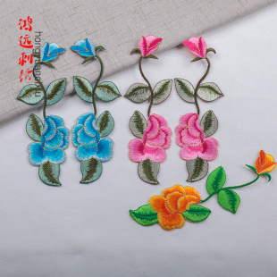 厂家直销月季刺绣布贴衣服修补洞diy手帐包包装饰补丁贴绣花加工