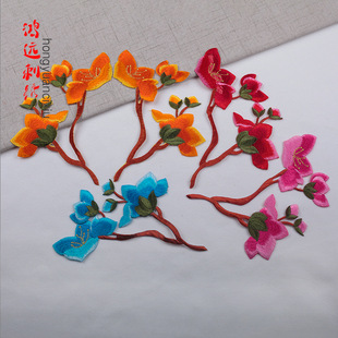 厂家直销电脑绣花腊梅花刺绣布贴补丁贴大片旗袍diy烫贴片中国风