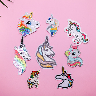 义乌厂家批发刺绣独角兽布贴 服装帽子熨烫背胶贴片绣花章仔 | |