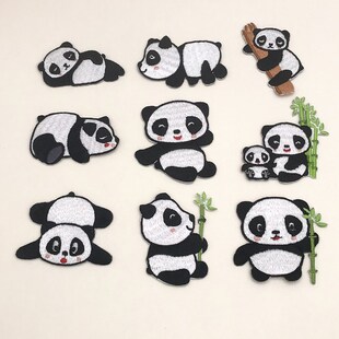 批发新品卡通熊猫组合绣花贴 贴布绣订制笔记本刺绣贴花现货 | |