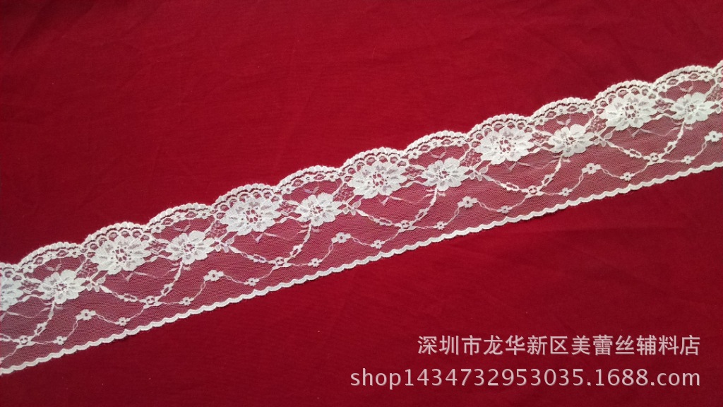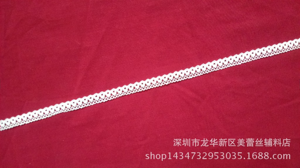 本产品原材料是采用进口优质锦纶丝,德产机器生产而成的,手感柔韧,颜色鲜明,平滑抗皱,质地牢固,洗水性强不褪色。可适用于装饰衣服,蚊帐雨伞,玩具等装饰。一卷(筒)500码 1码是0.9144米.要米的朋友们要算一下.本厂专业生产蕾丝花边