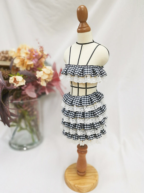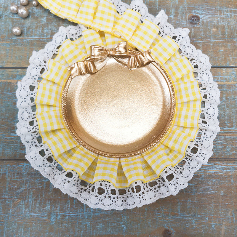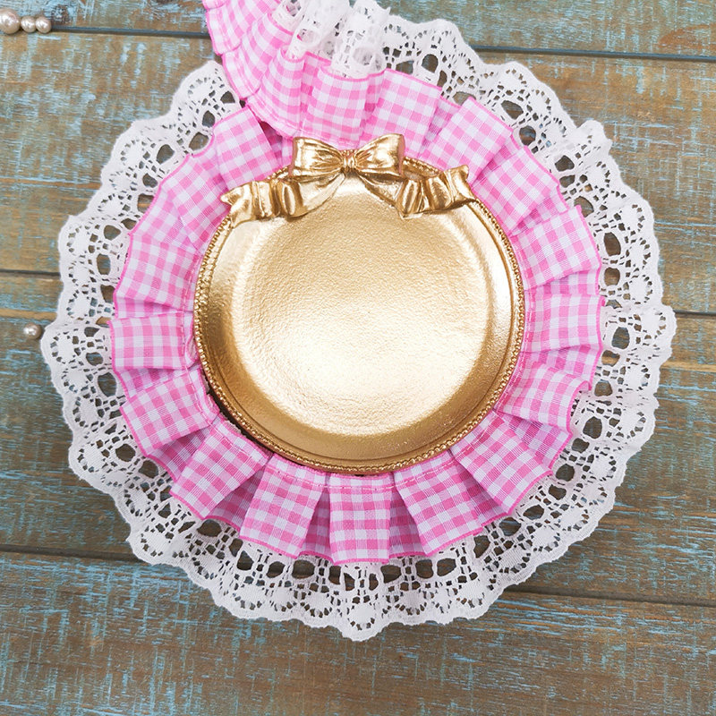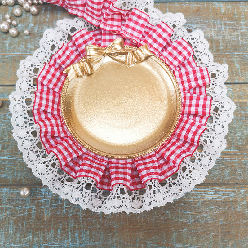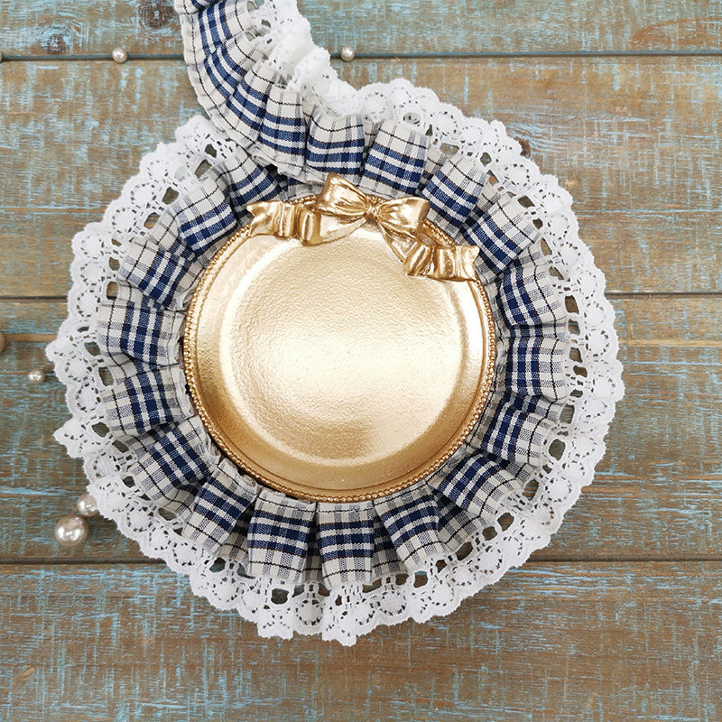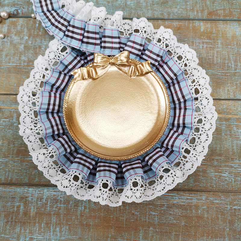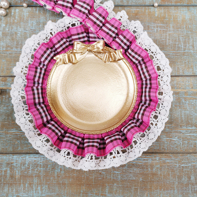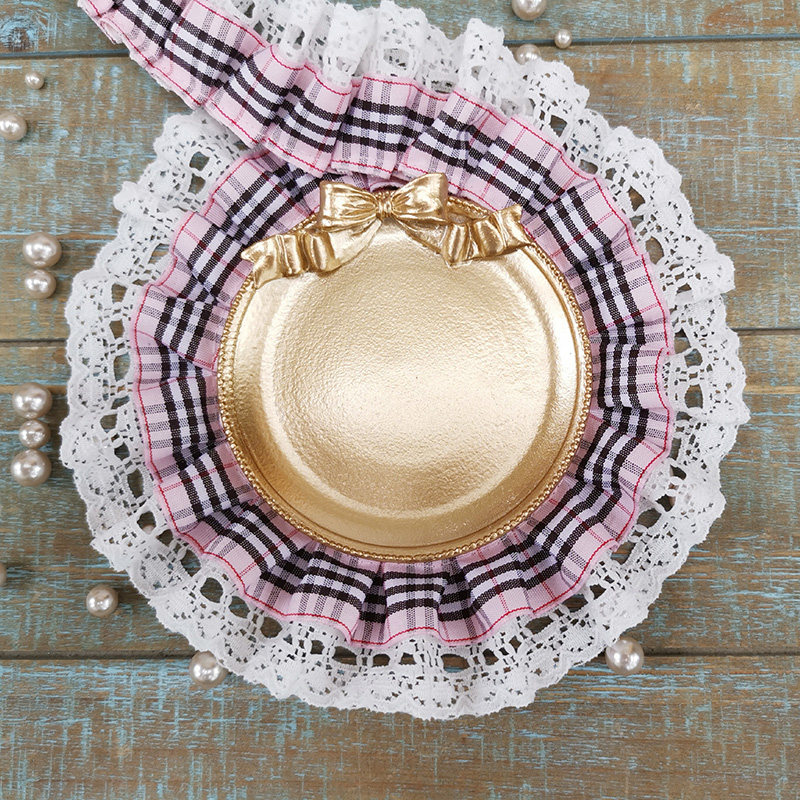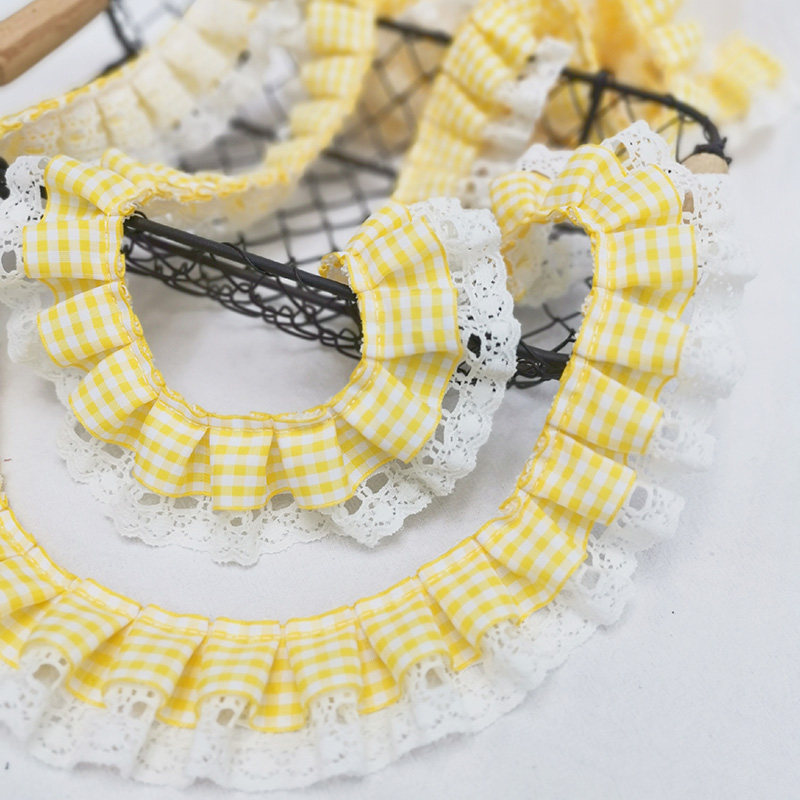 自加工 底层蕾丝上面一层格子带,褶皱整齐密实,无弹力,好质量。