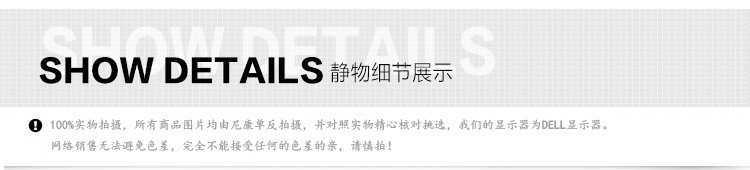 产品颜色:所有产品都是实物拍摄,只要亮度跟对比度的调节,如果存在点色差,也只能怪我在学校PS没学好了!希望买家理解