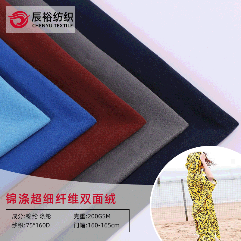- 彩色锦涤超细纤维双面绒面料 运动毛巾瑜伽巾浴巾沙滩巾布料