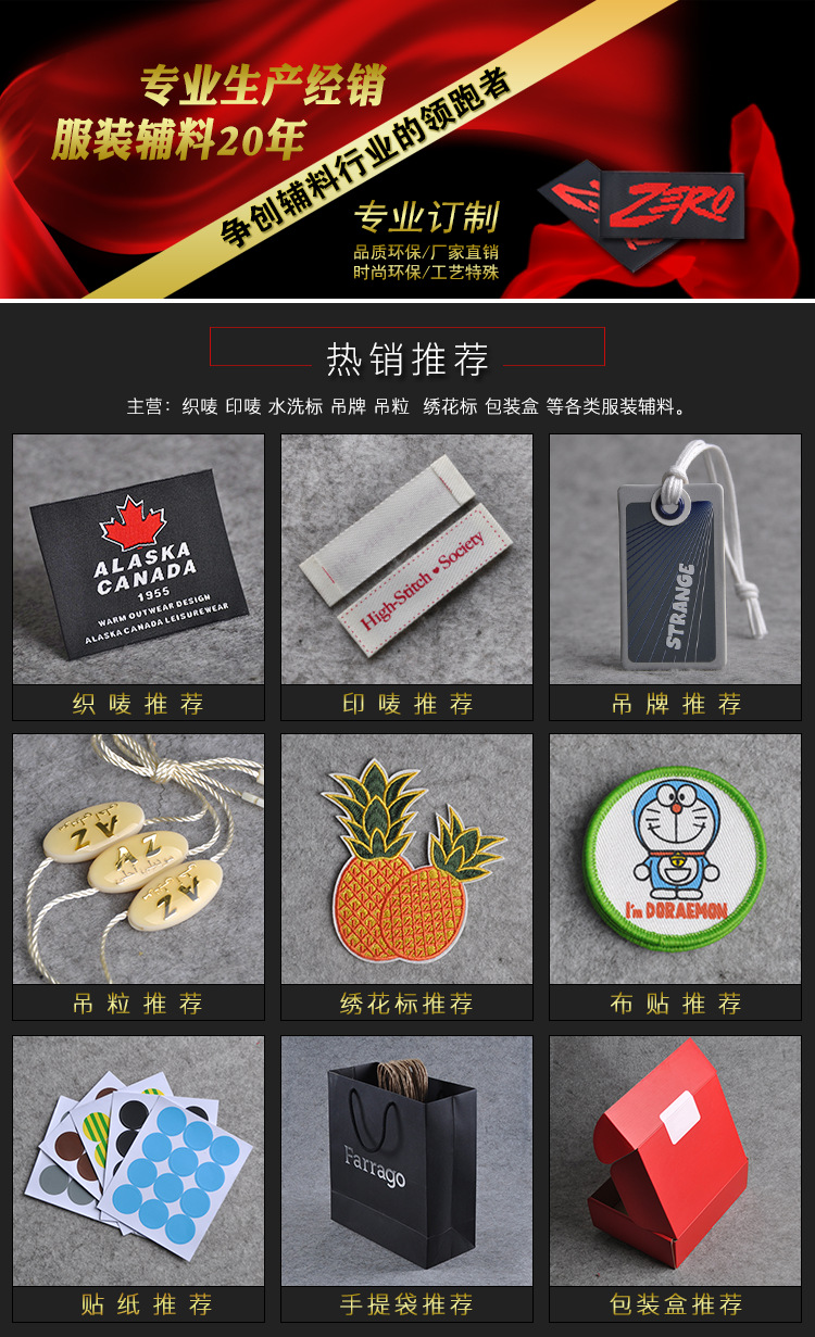 d.纺织材料:包括帆布、丝绸、化纤及棉织品等。常见于各类休闲服装吊牌上以及吊牌的挂绳上。