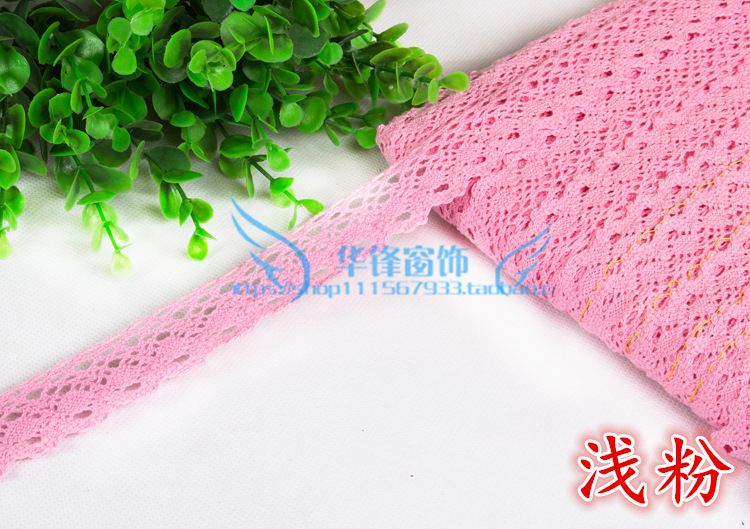 【产品名称】:2.5公分彩色棉边 【产品规格】:小边高度为2.5CM,一板50米左右 【安装方法】:用缝纫机把花边与布艺产品缝合即可(也可以让您当地的窗帘加工店去加工)
