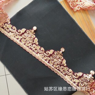 | 4色酒红黑色大红香槟 对花婚纱礼服蕾丝花边 |
