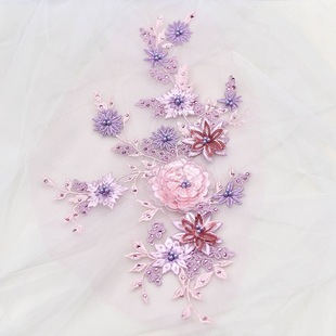 | 彩色立体钉珠蕾丝花朵贴花婚纱手工diy补丁贴片服装装饰配件材料 |