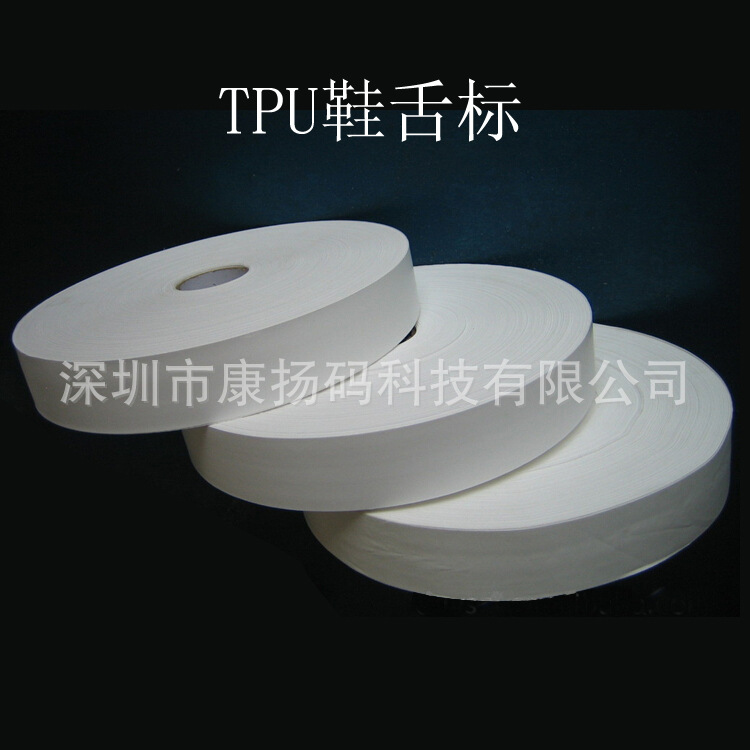 鞋舌标用TPU薄膜;一面可以印刷商标码、一面带热熔胶方便高频加工,可以取代PVC商标或者布标,提高鞋子的档次。材料环保,通过国际标准检测。TPU具有卓越的特性优点:1、抗拉2、不易变形3、不易退色4、高温热压、粘力强5、不易脱落,是一种成熟的环保材料。