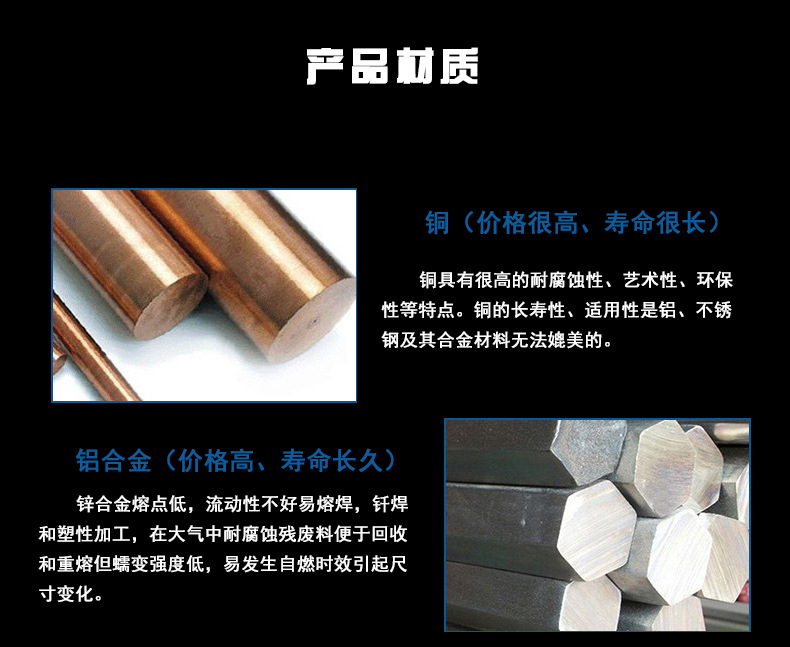 铜、铝、铁、锌合金、不锈钢、等金属。
