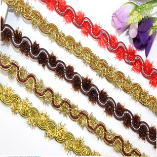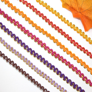 厂家现货金色花边 波浪S型小中弯花边 民族舞台服装辅料彩色花边