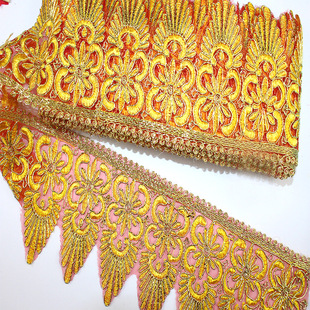 厂家供应金丝线花边 皇冠刺绣花边 服装辅料舞台配饰民族金色花边