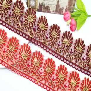 厂家热卖网布刺绣花边 民族风网布花边 提花现货批发金丝线花边