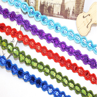 厂家爆款批发波浪亮片花边 亮片织带 服装辅料边彩色亮片织带花边