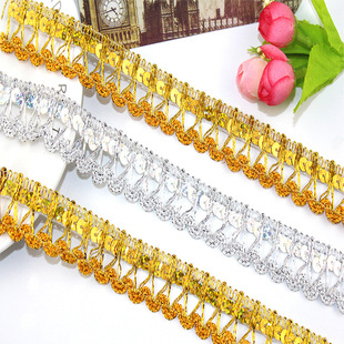 2019爆款直销金银丝亮片花边 DIY服装辅料舞台配饰亮片金银丝花边