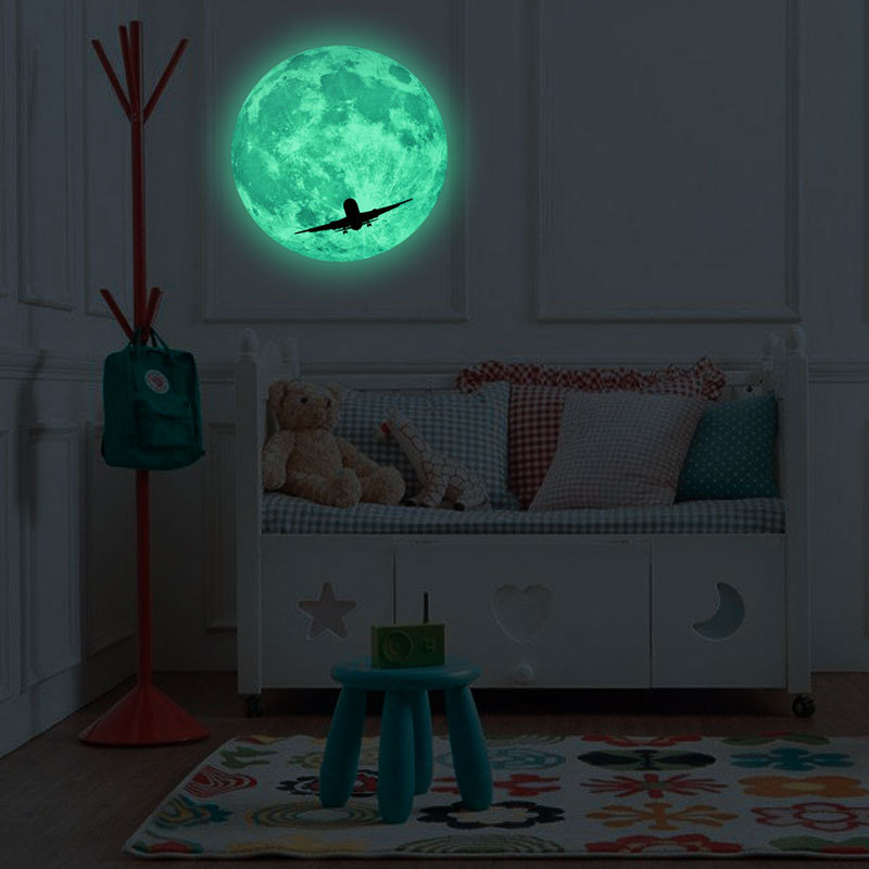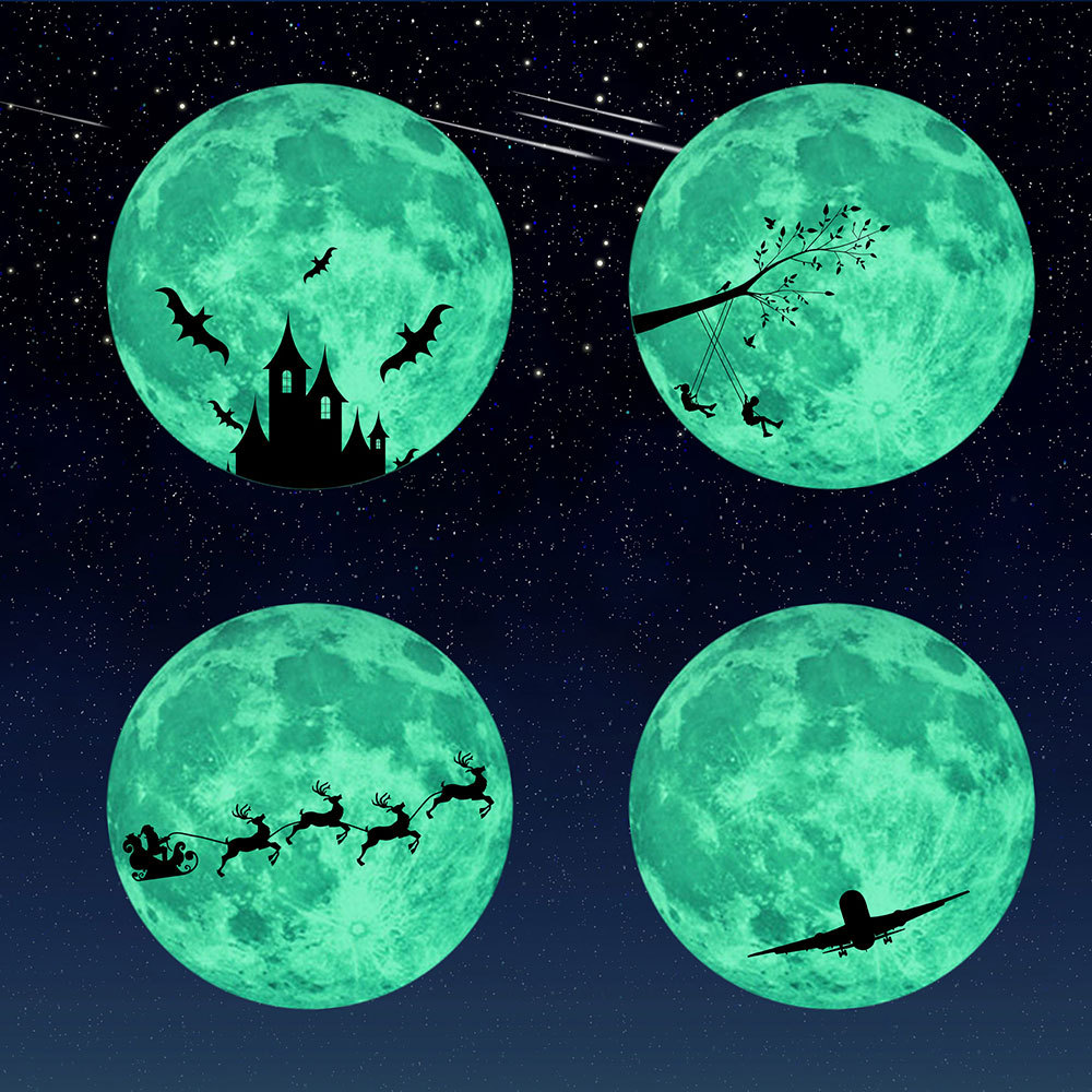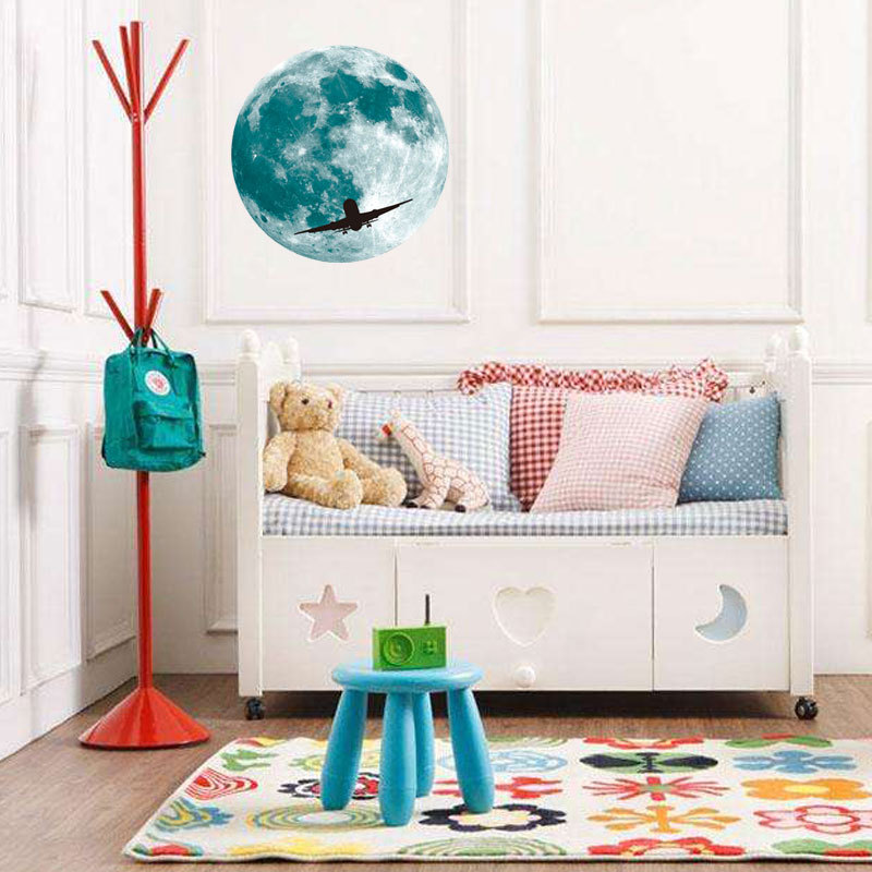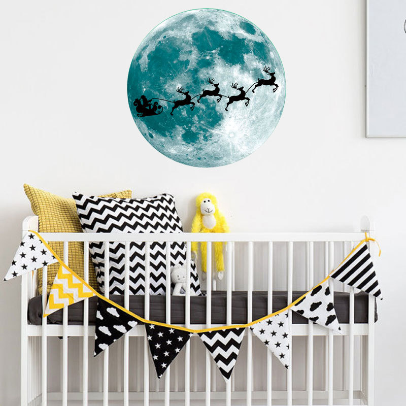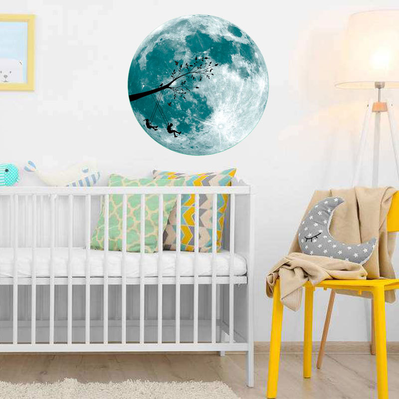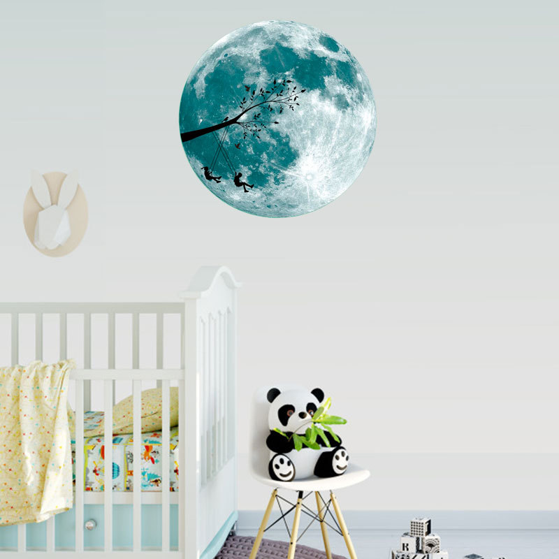 | 三色夜光粉蓝绿光月球星星组合儿童房幼儿园背景装饰自粘墙贴