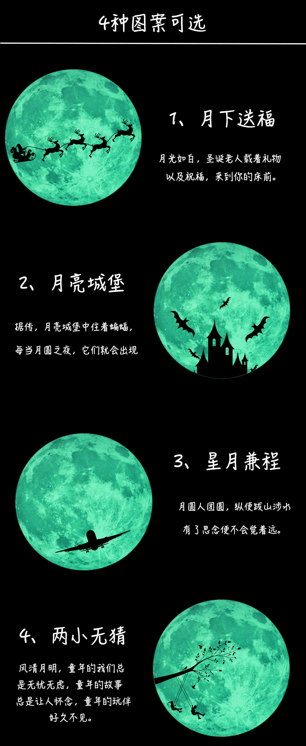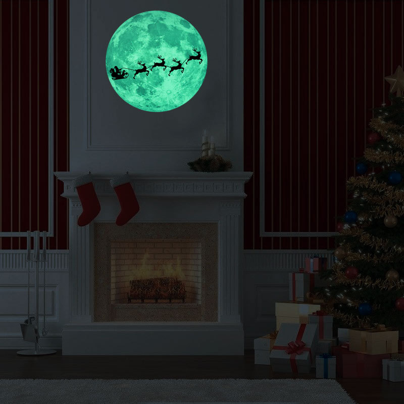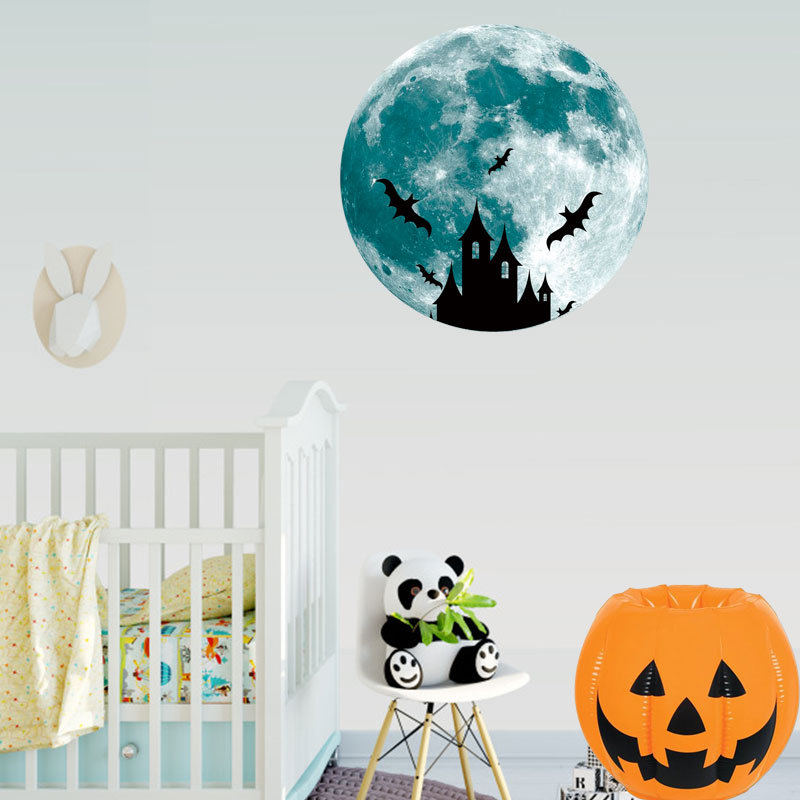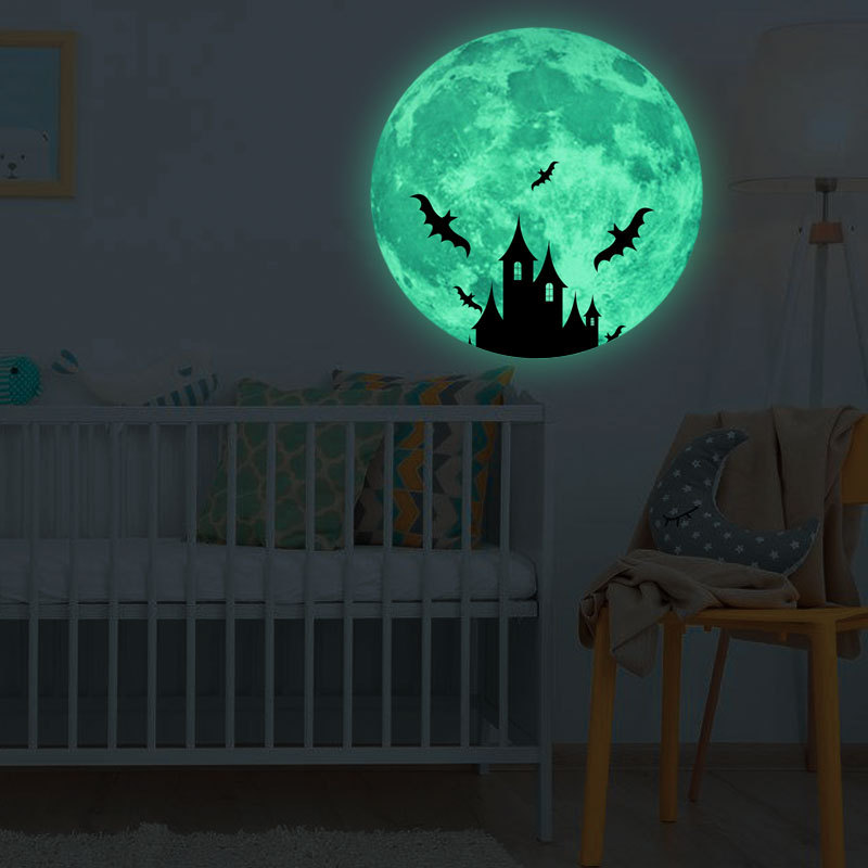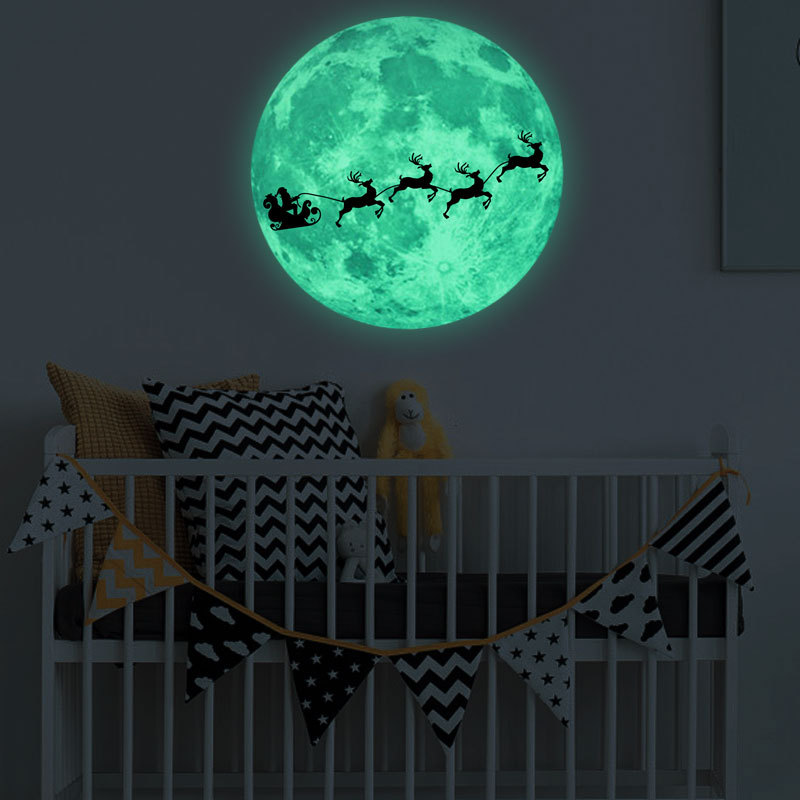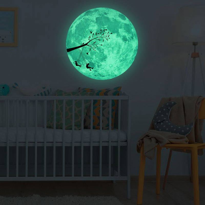 | 三色夜光粉蓝绿光月球星星组合儿童房幼儿园背景装饰自粘墙贴