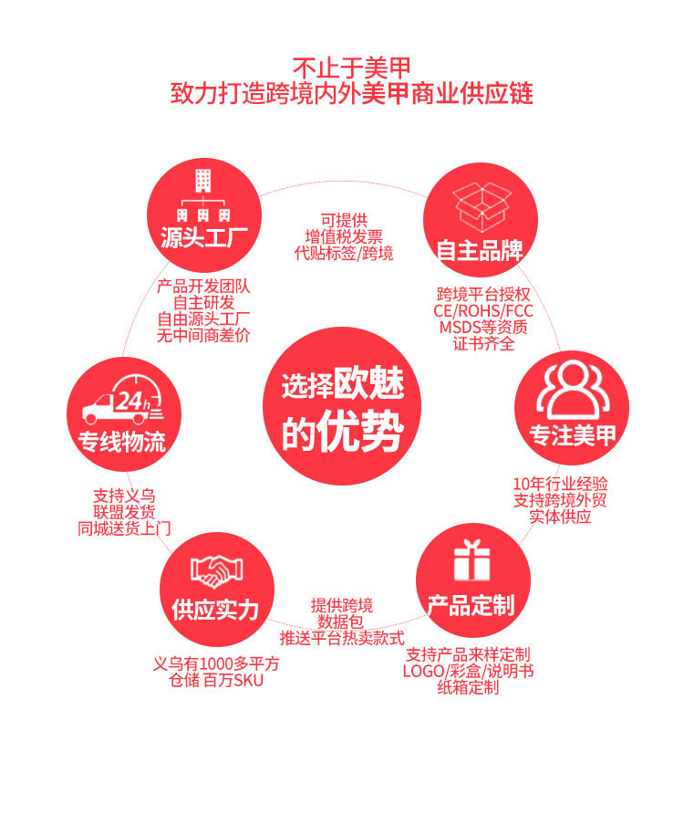 美甲专业一站式批发 ebay 速卖通 亚马逊 淘宝天猫卖家 电子商务平台 美甲店 零售及国内外批发,需要大订单洽谈业务可以直接联系我们,我们会给你有市场竞争力的价格