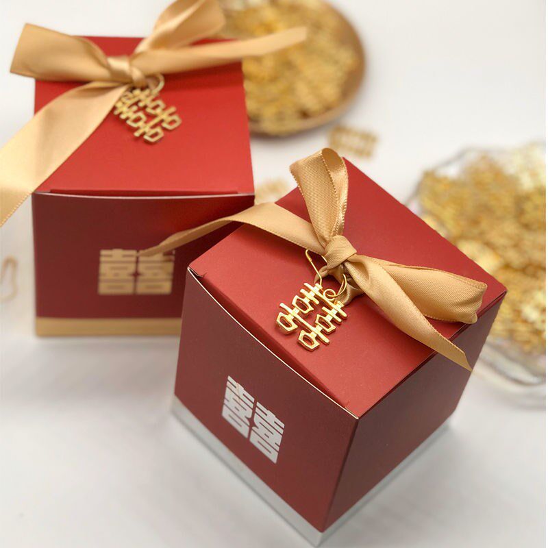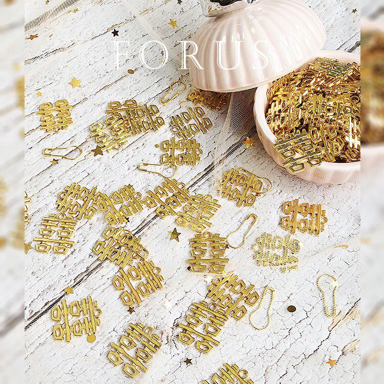 双喜临门 创意结婚喜糖盒喜字吊坠配件小金属diy配饰糖袋挂件