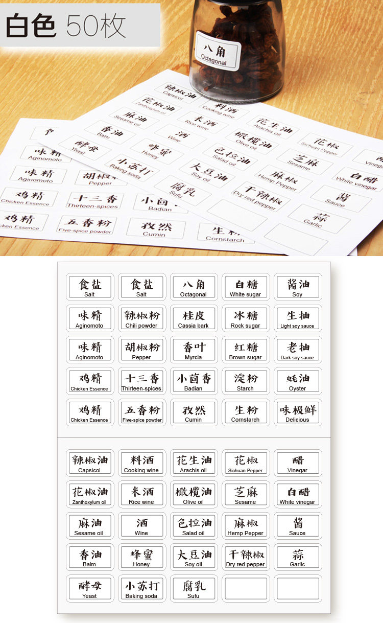 家用调料瓶贴纸,可个性定制
