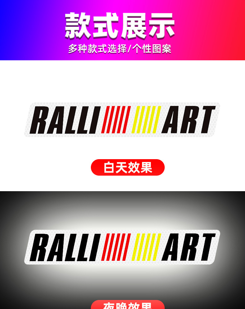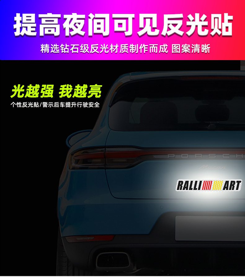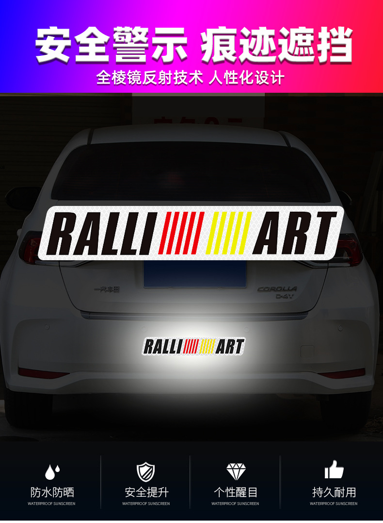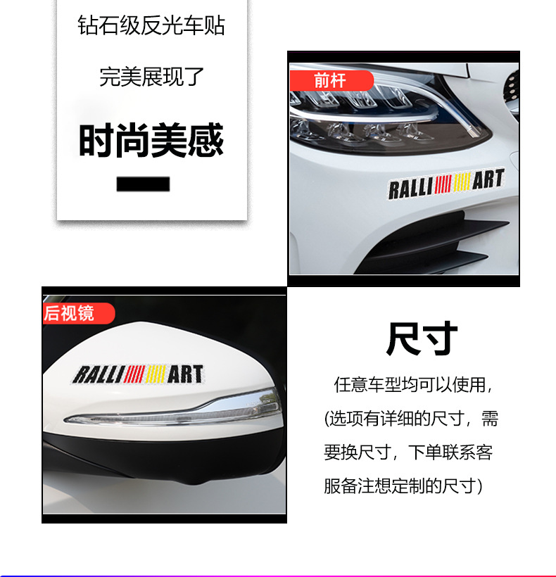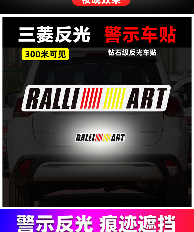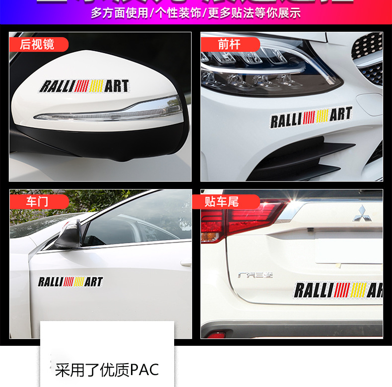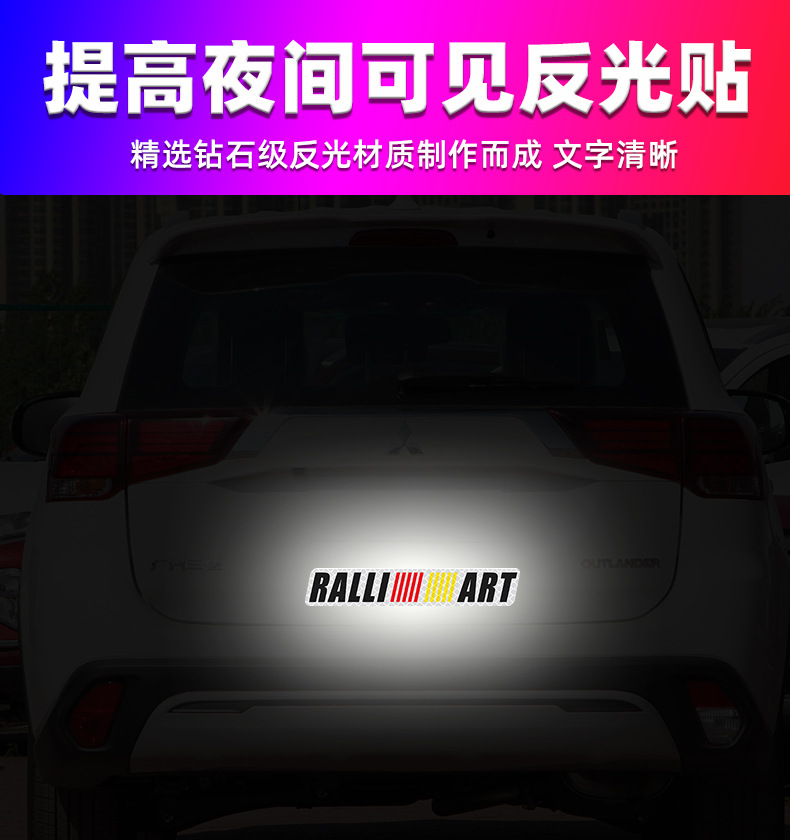 适用于三菱汽车标志反光贴 拉力艺RALLIART字标贴 车尾标侧标贴纸