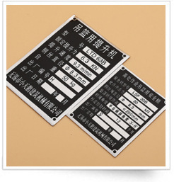 | 铭牌定义:产品投放市场后,固定在产品上向用户提供厂家商标识别、品牌区分,产品参数铭记等信息的铭牌。铭牌又称标牌,铭牌主要用来记载生产厂家及额定工作情况下的一些技术数据,以供正确使用而不致损坏设备。制作铭牌的材料有金属类和非金属类之分别:金属类有锌合金、铜、铁、铝、 不锈钢等,但是主要用铝生产比较多,因为加工出来的铭牌效果相对要高档,经久耐用,不生锈。非金属类有塑料、亚克力有机板、PVC、PC、纸等。 |