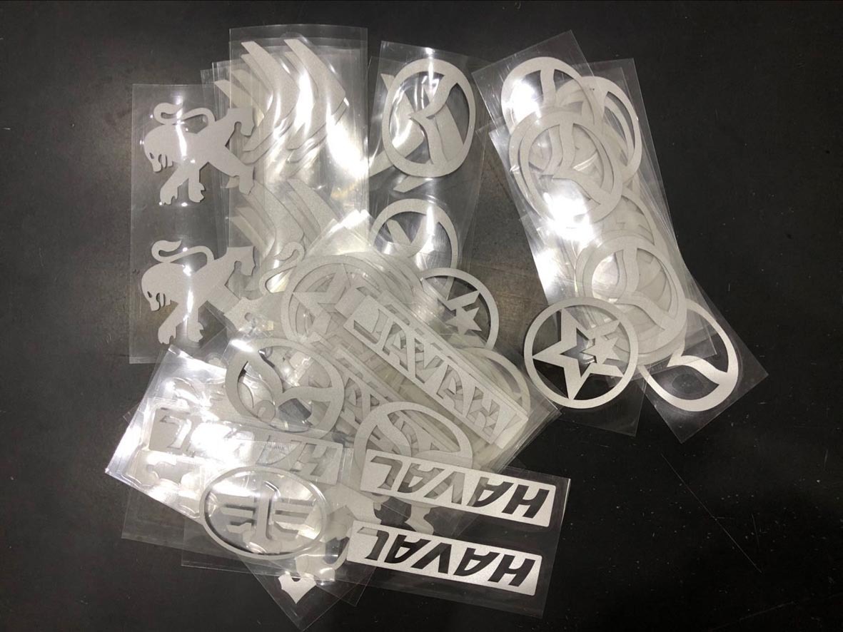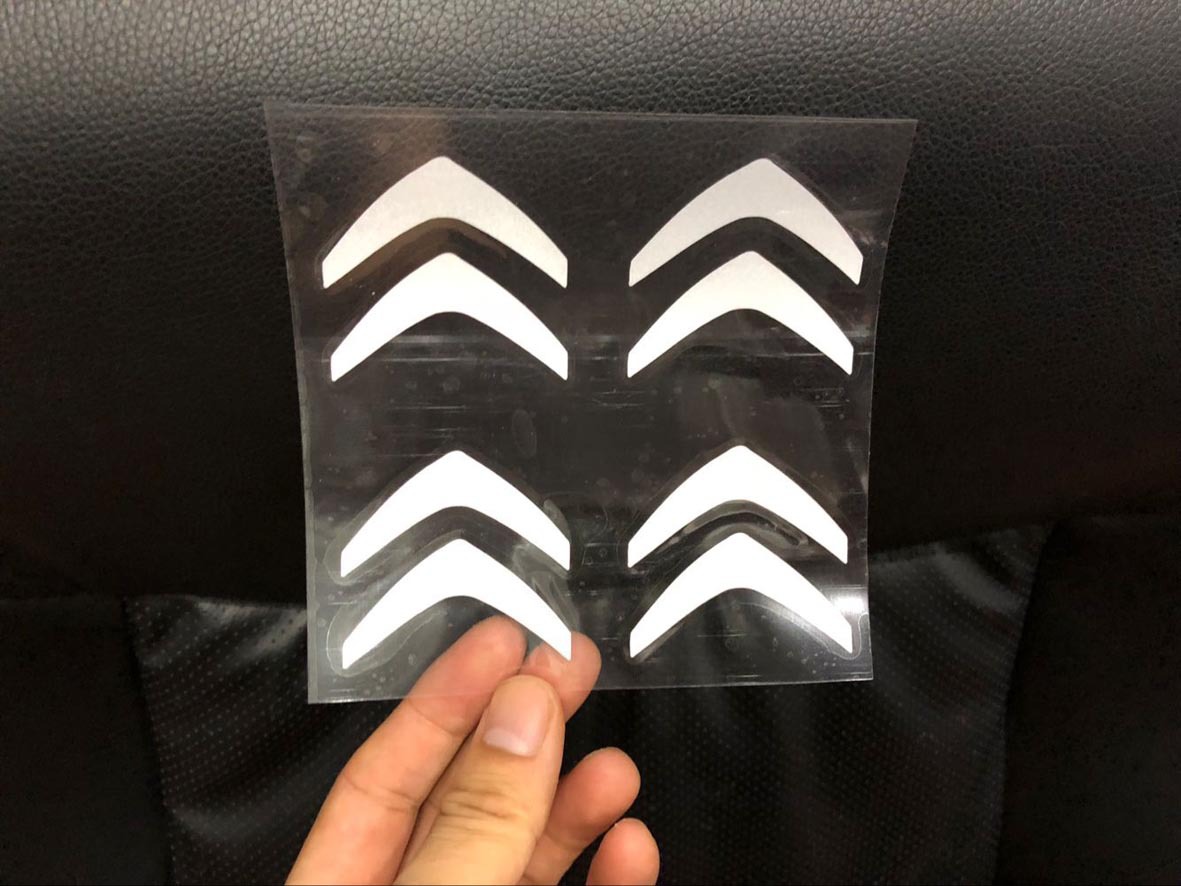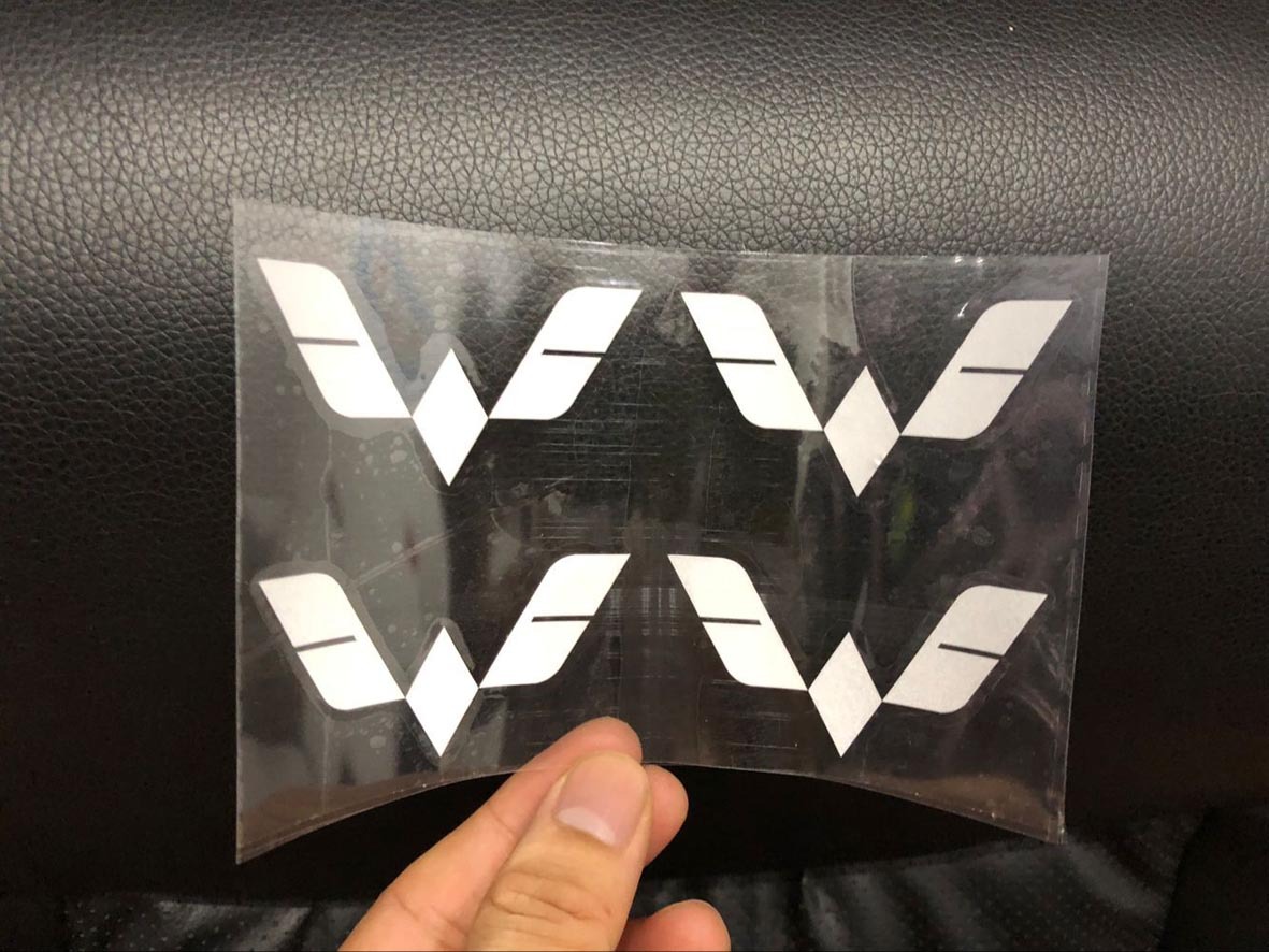 2、确定好需要贴的位置后,将转移膜(粘贴在反光贴上的透明胶膜)连同车贴从右至左向[或从上向下方]揭起一边并用抹布将其压贴在车表上,然后一边贴、一边用抹布压平、一边揭底纸。