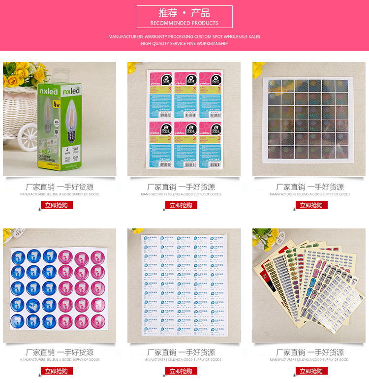 本公司专业生产各种:不干胶标签、PVC盒、水晶滴塑、防伪商标、透明不干胶、 铜板纸不干胶、易碎纸不干胶、亚银不干胶、PVC铭牌等纸塑工艺品。