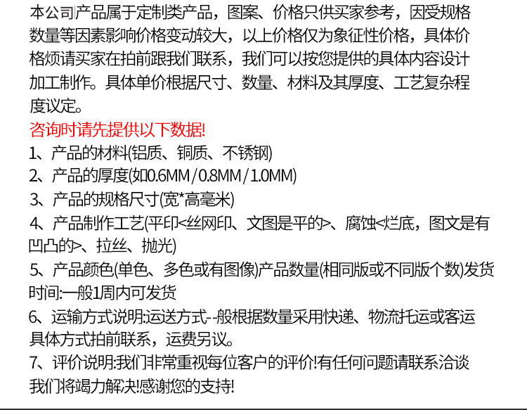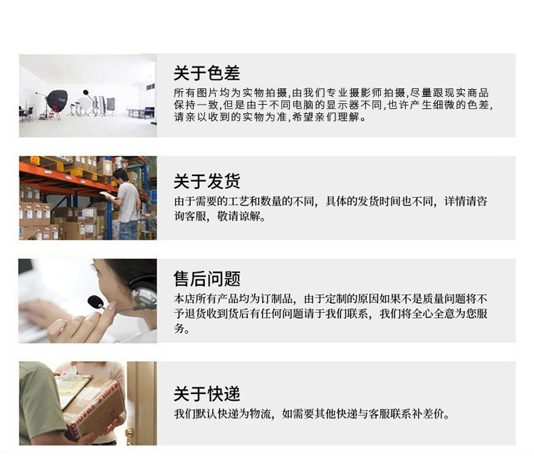 本店商品均支持一件代发,部分包邮。已缴纳6688诚信金,所有产品全部赠送运费险,放心购买,售后无忧。不接急单,特别着急的客户请联系客服确认发货时间。定制的产品非质量问题是不退换的哦。欢迎自助下单,如果有问题客服会联系您的。收藏+加入购物车=优先发货 发票说明:本店标价,都是不包括税点;开票另加税点,详细咨询客服!
