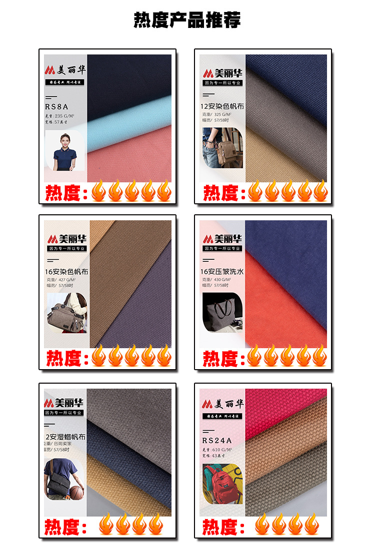 广州市美丽华皮革帆布有限公司是一家集生产,加工,批发贸易为一体的商行,位于广州市花都区狮岭(国际)皮革皮具城,专业生产经营全棉帆布(4-26安),涤棉帆布,竹节帆布,斜纹布,提花布,色织布,各类麻布,棉麻面料等;专业经营中高档箱包用PVC,PU皮革,并协同厂家开发印花,压花,染色,洗水,涂层,烫金,压胶,过胶,过蜡,贴膜,高光等不同工艺的产品,广泛适用于箱包手袋,鞋业面料,服装面料,沙发用料等.