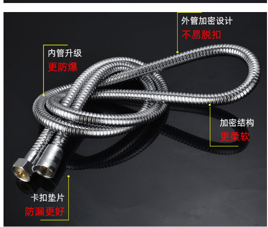 - 不锈钢淋浴软管花洒卫浴软管防爆喷头淋浴管双扣加密管