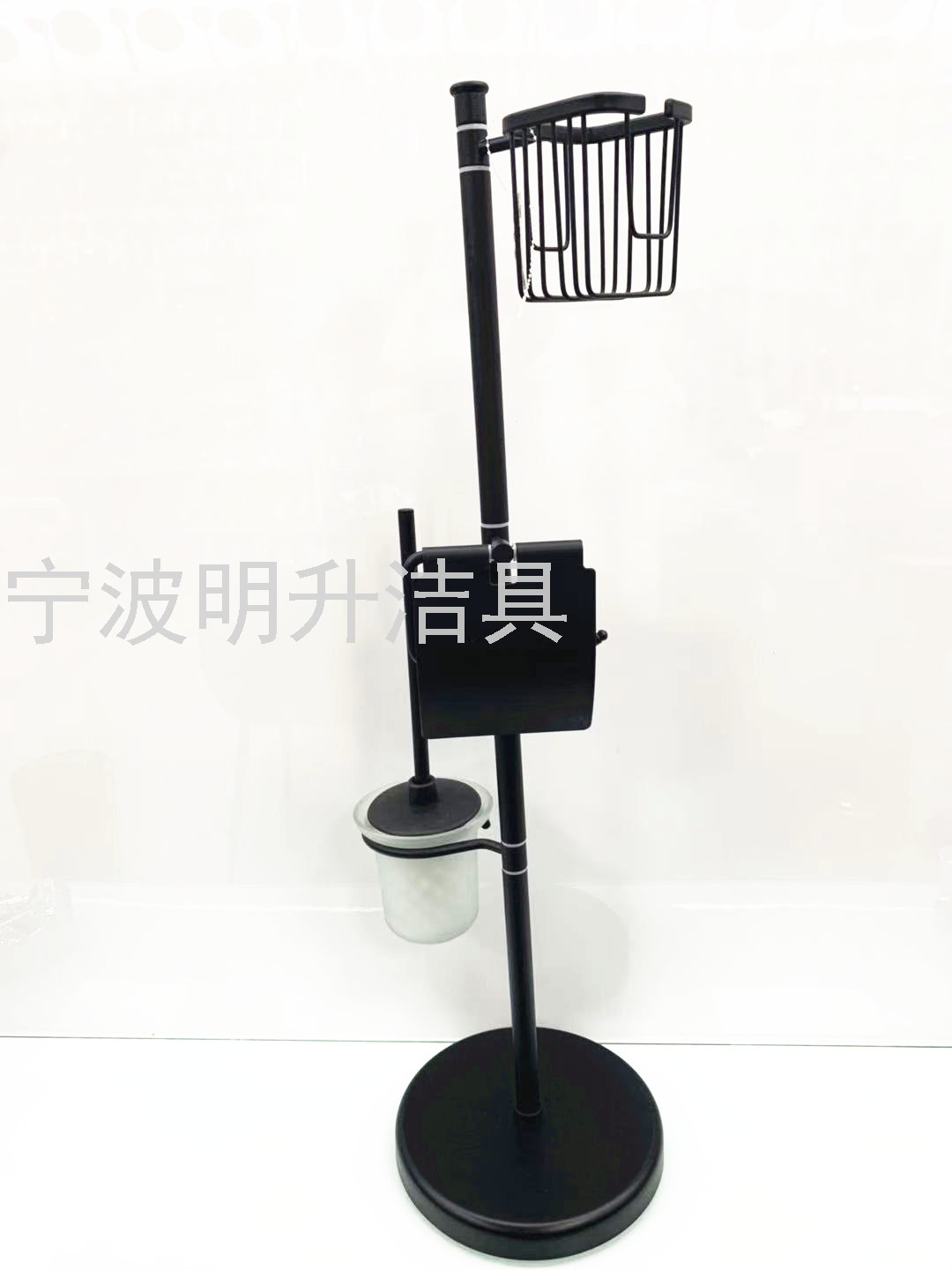 - 黑色落地立式不锈钢马桶刷清洁刷卫浴套装纸巾架置物架