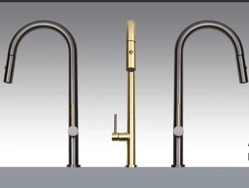 出口高档弹簧抽拉厨房水龙头玫瑰金,钛金,黑白不锈钢色镀铬色等