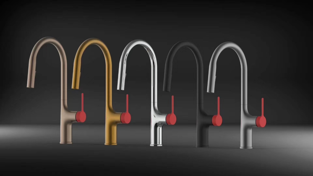 高档弹簧抽拉厨房水龙头玫瑰金钛金黑白银灰拉丝不锈钢色镀铬色等