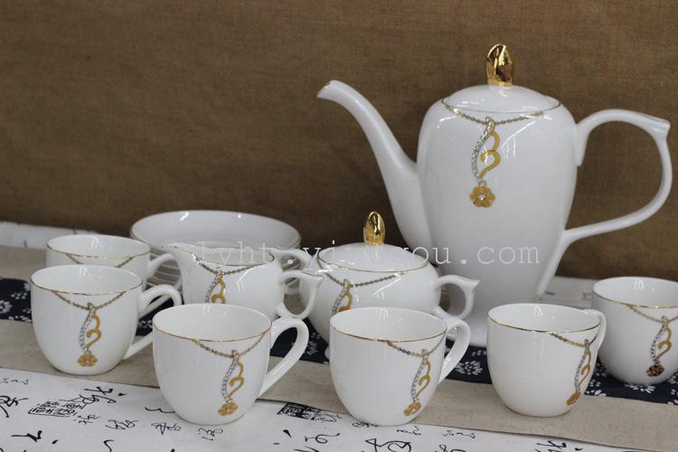 - 景德镇骨质瓷镶钻咖啡具陶瓷茶具水具促销礼品工艺品