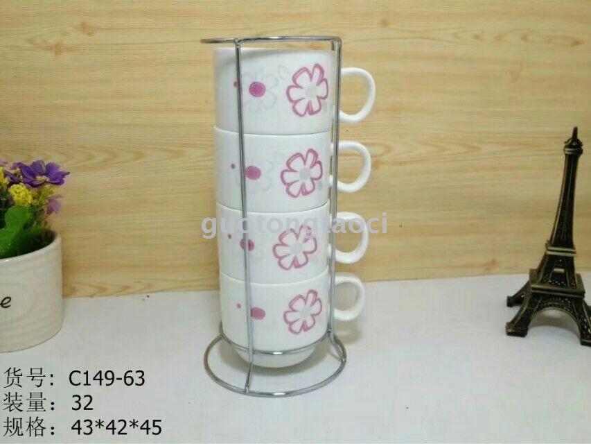 - 国通陶瓷套四陶瓷叠叠杯早餐杯咖啡杯创意礼品陶瓷礼品