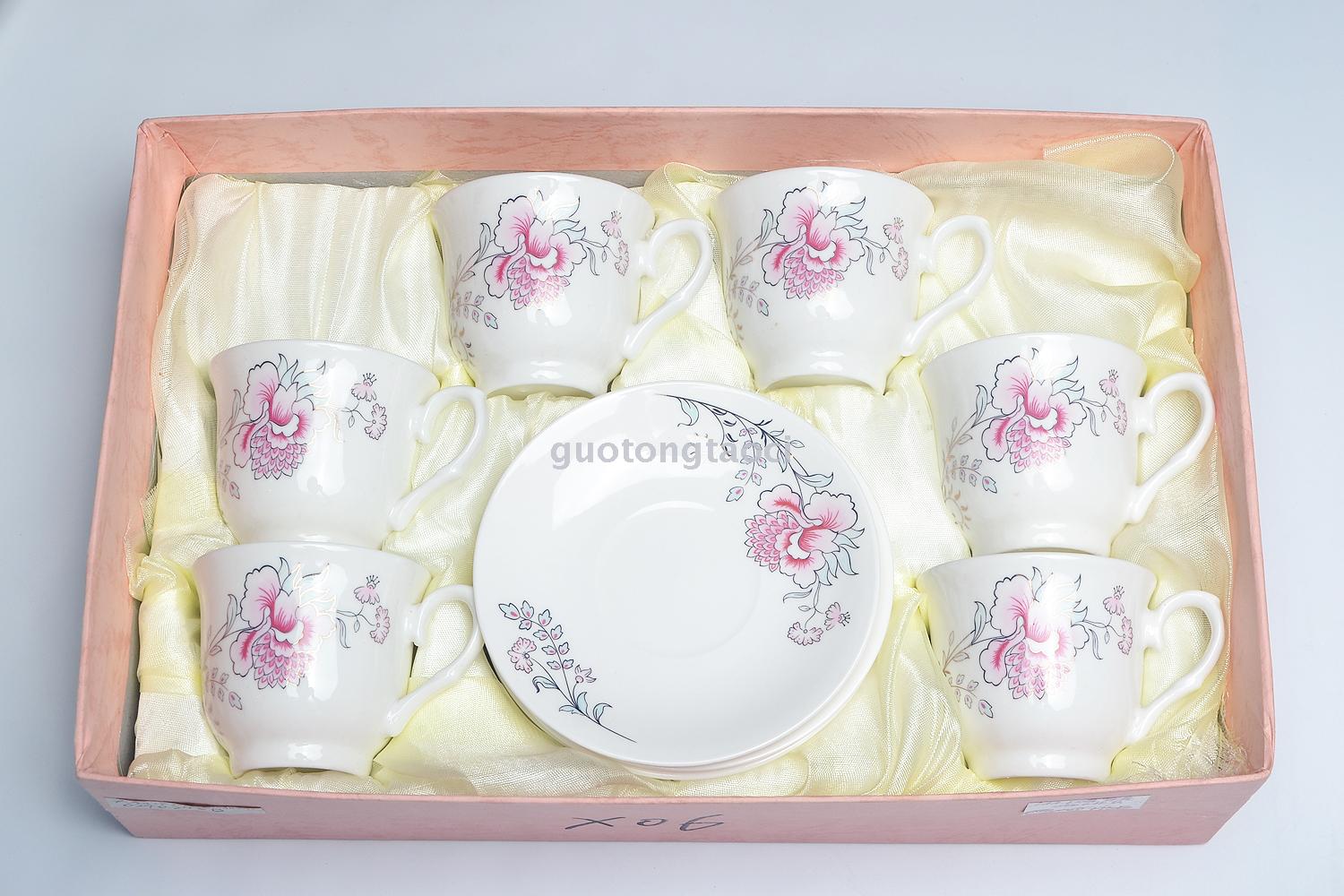 - 国通陶瓷新款陶瓷咖啡杯了六杯六碟套装陶瓷杯咖啡杯